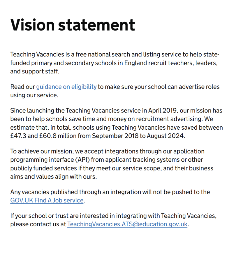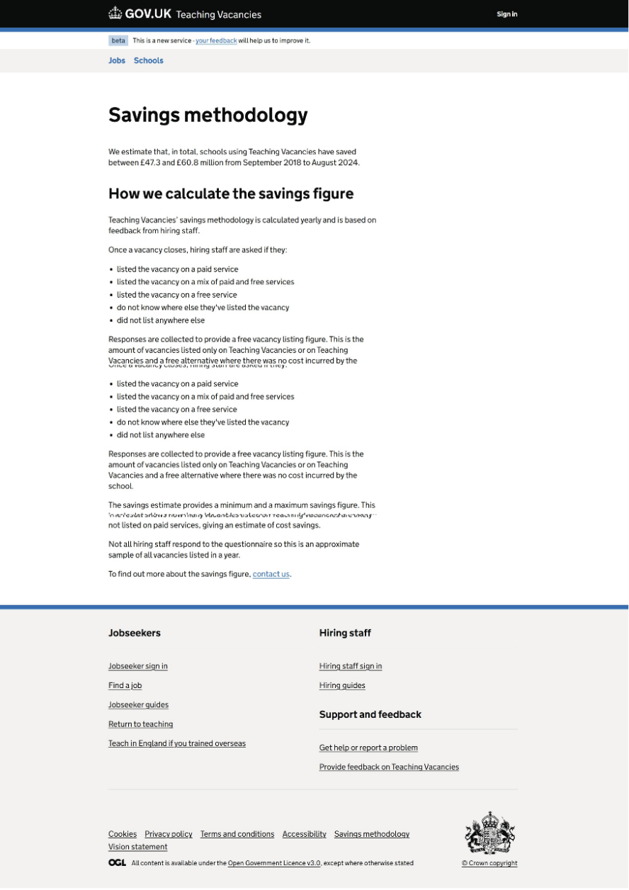 To make the Teaching Vacancies savings figure methodology more widely accessible, we published it in September 2024.