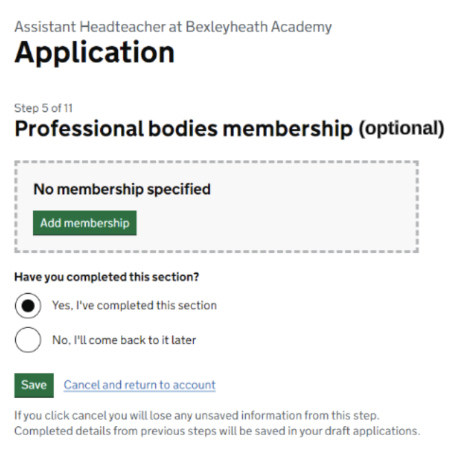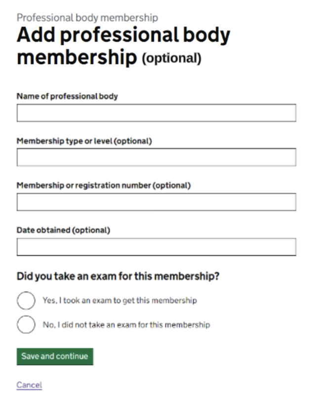 - creating a new professional body memberships section
