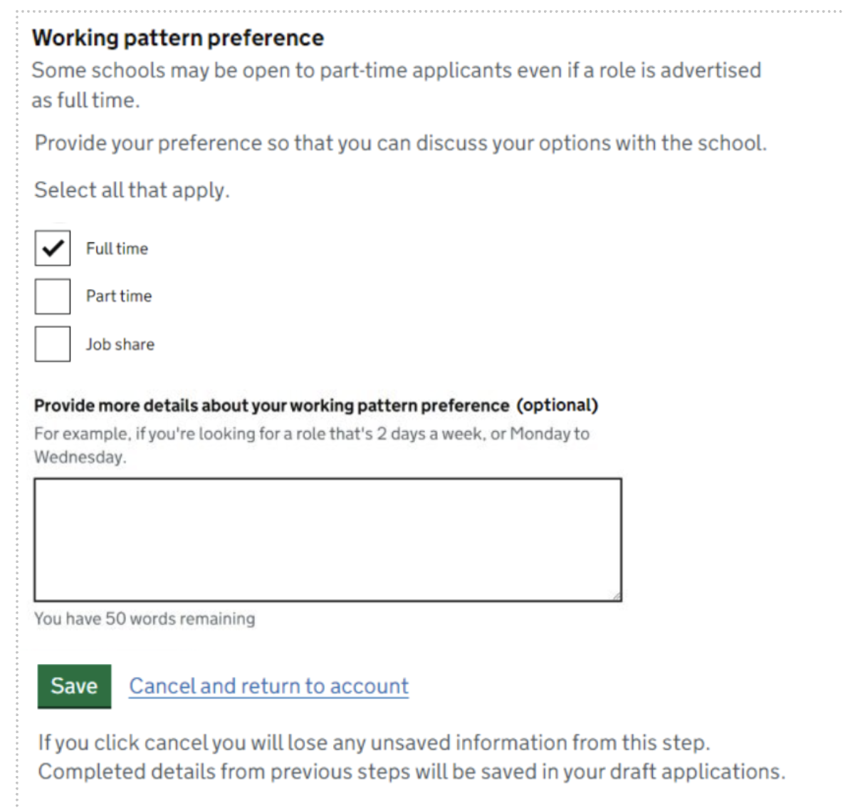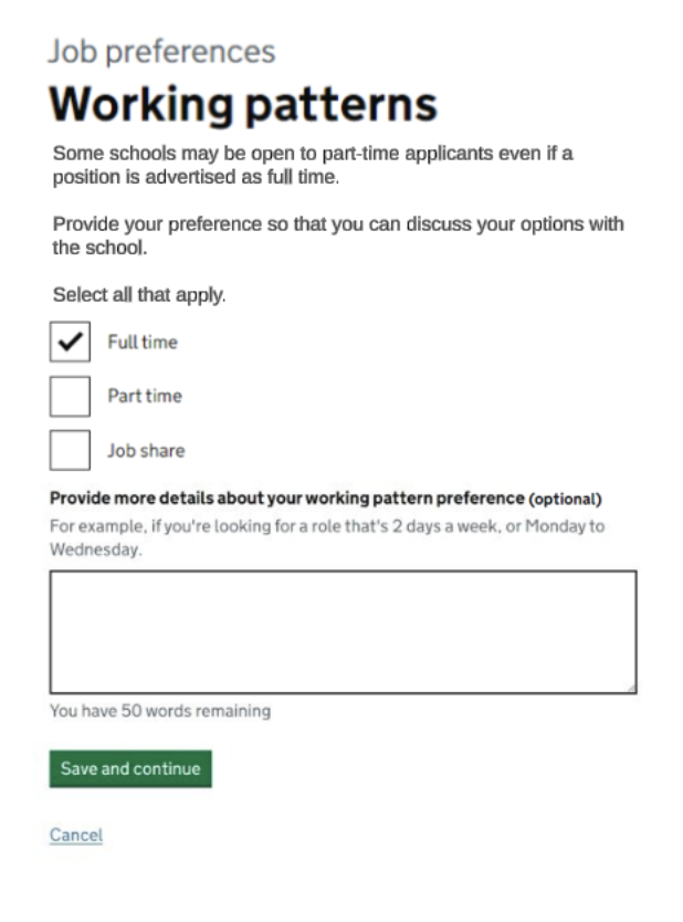 - jobseekers wanted to be able to tell hiring staff about any working pattern preferences within their application, so their expectations and availability was clear from the start