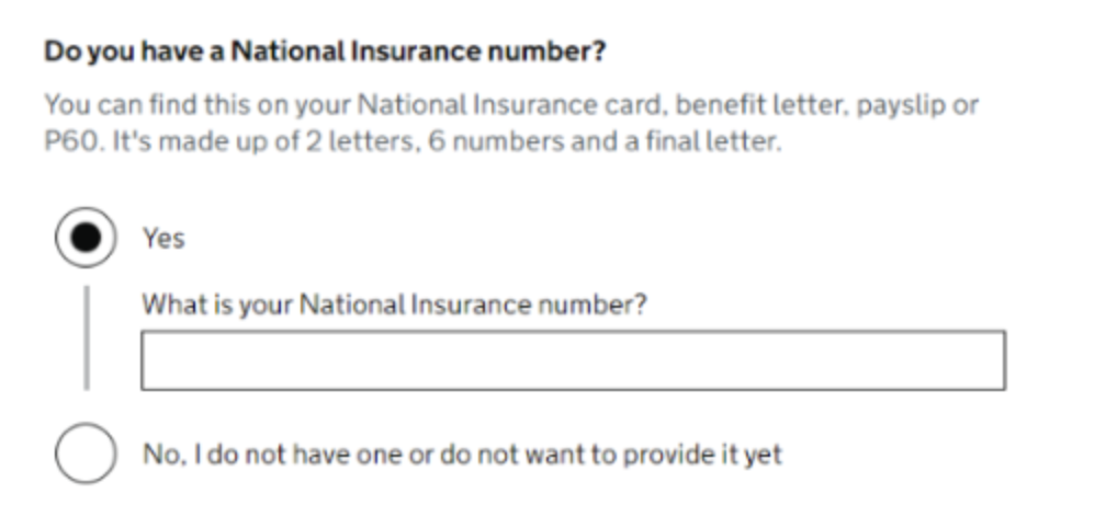 - introduced a radio response option when asking for a national insurance number to make the design clearer and show that it is optional