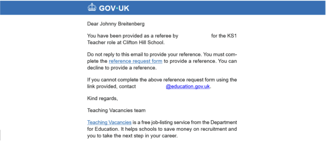 - The reference request email