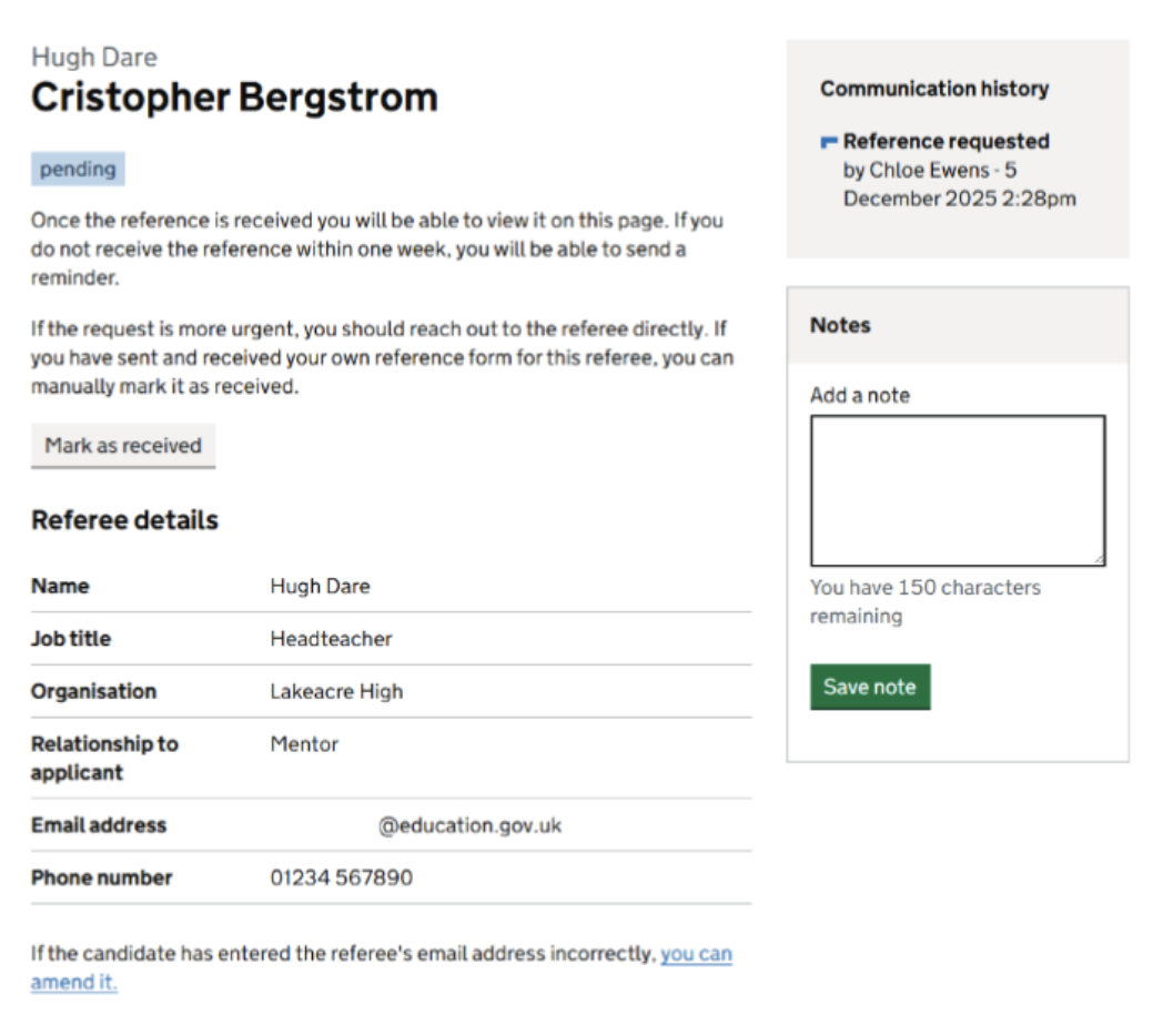 - amend the email address for a referee if the wrong one is provided when the ATS reference collection process is used