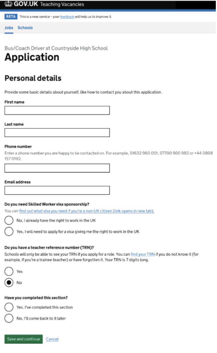 - Hiring staff to continue providing a document-based application form, but with completed forms accessed and managed through the Teaching Vacancies service and application dashboard.
