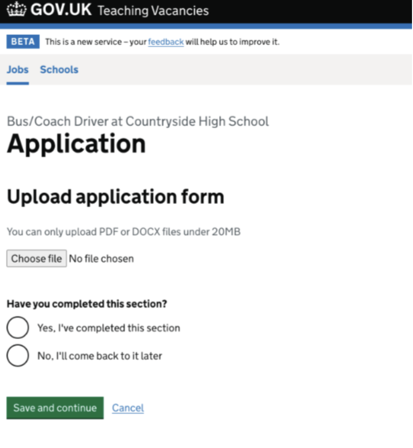- Jobseekers to download the application form only after signing into Teaching Vacancies, with a requirement to re-upload the completed form through the service.